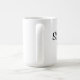 Weiße Tasse mit schwarzem Text und einem kleinen roten Herzen