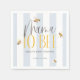 Mama to Bee Honey Blue Baby Dusche Napkins bietet einen schicken gestreiften Hintergrund und zarte Honigbienen in Aquarellfarbe.