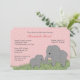 Niedliche Mama und Baby Elephant Holding Trunks in der Grass Pink Girl Baby Dusche einladen. Pink Scattered Polka Dot Background.