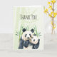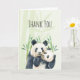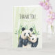 Vielen Dank für Ihren Gruß mit einer niedlichen Aquarellbild mit einem schwarz-weißen Mama- und Babypanda-Paar. Mommy hält ihre Keule unter ein paar grünen Bambusstalks.