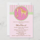 Süße und niedliche Einladung. Kennzeichnet eine Mamma- und Babygiraffe in einer liebevollen Pose. Der Streifen- und Polkapunkthintergrund addieren eine moderne Touch.