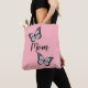 Rosa Tasche hat zwei schöne Schmetterlinge, die um das Wort "Mutter" in schwarzem Drehbuch fliegen.