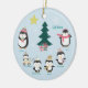 Adorable Pinguin-Ornament für die 6-köpfige Familie. Personalisieren Sie es mit dem Namen der Mama und des Vaters und den vier Kindernamen, sowie mit dem Jahr. Die Rückseite ist ein Muster von "Frohe Weihnachten"! Großes Geschenk für die Großeltern!