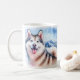 Im Winter erwartet Sie eine Kaffeemaschine mit einer niedlichen Aquarellfarbe Husky. Personalisierbar.