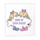 Unsere Mama von Twin Girls T - Shirt, Tasse, Tasten, Magneten, Karten, Taschen und anderen Mamas von Twin Girls-Artikeln umfasst zwei bezaubernde Babys in Rosa und Lavendelschwellen mit einer Wolke, die lautet "Mama von Twin Girls!".