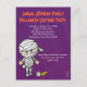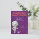 Niedliche kleine Mumie in Toilettenpapier auf violettem Hintergrund verpackt. Ideal, um Ihre Party-Ankündigungen zu verschicken. Passen Sie es an und machen Sie es zu Ihrem.