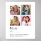 Erstellen Sie Ihre eigenen personalisierten Mütter Tagesgeschenke für Mama mit einem benutzerdefinierten Designoposter, das vier Ihrer Lieblings-Fotos in einer einfachen Collage enthält. Fügen Sie Ihre eigene Definition von Mutter, individuellem Zitat oder Nachricht in dieses Wörterbuchdesign ein.