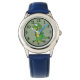 Kinderuhr aus Edelstahl mit blauem Lederarmband