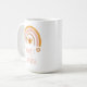 Die Tasse "Mama's Cup of Happiness" ist eine reizvolle Mischung aus Stil und Sentimentalität. Mit einem skurrilen Boho-Regenbogen-Design fügt es ihrem Alltag einen Pop von Farbe und Spaß hinzu. Egal, ob sie ihre Lieblingsmischung aus Kaffee, Tee oder heißem Kakao trinken, diese Tasse bringt ihr sicherlich ein Lächeln ins Gesicht. Der Name ist editierbar, sodass Sie "Mama" in ein anderes kurzes Wort wie Mama, Mommy, Nonna, Nana ändern können.