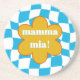 Bring a burst of retro joy and a touch of 'dopamine decor' to your kitchen with this "Mamma Mia!" sandstone coaster. Featuring a vibrant checkerboard pattern in sunny sky blue and white, this coaster is designed to add a playful and stylish vibe to any space. The central yellow flower graphic with the iconic phrase "mamma mia!" in a groovy font adds a unique and eye-catching element, perfect for moms or anyone who loves a bit of vintage flair. Thoughtful gift offering functionality and a cheerful pop of color to brighten your day.