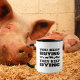 Diese Tasse "You Behalt Buying, they Behalt Dying" enthält ein Zitat mit schwarzen Buchstaben und Nutztieren.
