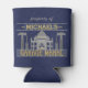 Diese lustige, maßgeschneiderte Dosenkühle ist perfekt für Ihre Männerhöhle. Es steht "Eigentum von Garage Mahal" und zeigt eine Kontur des Taj Mahal mit Hämmern, Schraubenziehern und einem kleinen Auto, das aussieht, als wäre es in der Mitte geparkt. Fügen Sie einfach Ihren Namen hinzu. Die Farben sind blau, grau und goldgelb, und das Design wiederholt sich auf der Rückseite.