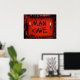 Man Cave Art Malerei in rot bis schwarz Farben mit hellen Fackeln auf jeder Seite. Die Kunst des Menschen für seine Höhle. Eine Höhlenwand mit frühzeitiger Handschrift, ähnlich wie ein Höhlenmaler. Kunst für einen Untergrund, der wohnt oder wohnt, wo Männer sich hinziehen und manches tun