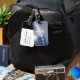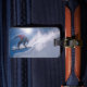 Man springt von einer großen Ecke auf einem Snowbo Gepäckanhänger