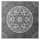 Dieses weiße Mandala sitzt auf einem dunkelgrauen Hintergrund. Die Farben sind neutral und reserviert und passen überall hinein. Teil der Sammlung Glasa Mandala.