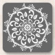 Dieses weiße Mandala sitzt auf einem dunkelgrauen Hintergrund. Die Farben sind neutral und reserviert und passen überall hinein. Teil der Payon Mandala Kollektion.