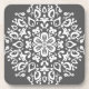Dieses weiße Mandala sitzt auf einem dunkelgrauen Hintergrund. Die Farben sind neutral und reserviert und passen überall hinein. Teil der Sammlung Pras Mandala.