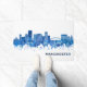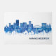 Blue Watercolor Skyline of Manchester, a city in Hillsborough County in southern New Hampshire, United States