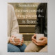 Diese beruhigende Wandkunst erfasst die ruhige Verbindungsstärke. Mit zwei Personen, die nebeneinander auf einer Parkbank sitzen und warme Tasse in der Hand halten, erinnert uns dieses Bild an den einfachen Power, in der Gegenwart zu sein. Gelassen, es dient als tägliche Erinnerung, dass Hören - wahrhaftiges Zuhören - alles verändern kann. Perfekt für: ・ Therapieräume ・ Kaffeeecken ・ Ruhige Zuhause-Umgebungen ・ Geschenke für Freunde, Berater oder LehrerBringen Sie dieses herzliche Gefühl visuell in jeden Raum, wo Mitgefühl wichtig ist.