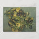 Der Korb der Stiefmütterchen auf einem kleinen Tisch von Vincent van Gogh Postcard Van Gogh begann, nach dem Umzug nach Paris im Jahr 1886 noch Leben von Blume zu malen. Hier zeigt er einen Korb von Stiefmütterchen auf einem Hocker mit einem Sitz in Form eines Tambourins. Der Hocker stammt aus dem Café Le Tambourin, dessen Möbel und andere Einrichtungsgegenstände durch dieses Instrument inspiriert wurden.