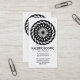 Eine stilvolle Visitenkartenvorlage mit einem attraktiven runden geometrischen Motiv. Hauptfirmendetails auf der Vorderseite, mit Namen und persönlichem Kontakt auf der Rückseite.
