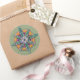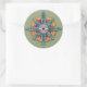 Dieses Mandala Design zeigt eine Blume mit 8 grünen Punktblättern. Die Hauptfarben in diesem Mandala sind grün, rot, gelb, rosa. Diese Sticker machen schöne kleine Geschenke für einen Mandala Lover.