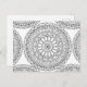 Eine hübsche Postkarte mit einem Boho Floral Mandala Muster in Schwarz und Weiß, die sich perfekt für Erwachsenenfarben eignet, aber auch eine angenehme Zeit mit Ihren Kindern, wo sie Ihnen helfen können, die Farben zu bestimmen. Handgezeichnet von SunFreeStar.