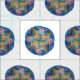 Circle abstrakt Mandala - blau, grün.pink auf Stoff.