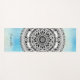Ein wunderschönes mandala symmetrisches, geometrisches Blumenmuster auf einem blauen, schimmernden Hintergrund, personalisiert mit Ihrem Namen in einem trendigen Schriftart im Skriptstil. Die Rückseite der Matte ist weiß.