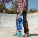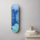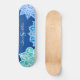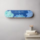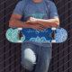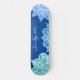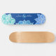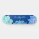 Eine farbenfrohe Skateboard mit hübschen weißen Mandalasen mit verschiedenen Blauen und Türkistönen auf blauem Hintergrund mit einem Namen und Monogramm, die Sie aus dem Menü Personalize ändern oder löschen können. Original Artwork von SunFreeStar.