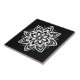Keramik-Kachel in einem 8-Punkte-Mandala/Medaillon-Muster in Weiß auf schwarzem Hintergrund