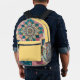 Dieser Rucksack mit Mandala Geometry weist ein kompaktes geometrisches Mandala-Design auf, mit konzentrischen Kreisen, Dreiecken und Sechsecken, die von hinten und von den Seiten ausstrahlen. Dieses in sanften Pastelltönen wie Pfirsich, Minzgrün und Lavendel gefertigte Muster verbindet Symmetrie mit künstlerischem Flair und ruft ein Gefühl von Ausgewogenheit und Harmonie hervor. Der Mandala Geometry Rucksack ist ideal für alle, die detaillierte und sinnvolle Designs schätzen. Er ist stilvoll und funktionell, perfekt für den täglichen Gebrauch, für Festivals oder Yoga-Sessions. Mit diesem auffälligen Accessoire tragen Sie überall ein Stück Ruhe und Schönheit.
