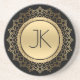 Schöner und eleganter goldgeometrischer Kreis verzierte Mandala mit anpassbarem schwarzen Hintergrund und anpassbarem Monogramm.