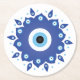 Mandala Griechisch Evil Eye Blue White Runder Pappuntersetzer