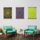 Each piece is a fusion of earthy charm and multidimensional beauty. The stained wood top adds warmth and grounding, while the crisp lines and vibrant hues of the mandala print invite clarity, breath, and energetic flow. Hemmed edges and twine for hanging complete the look—simple, soulful, and ready to shine.