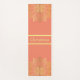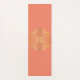 Eine wunderschöne Yoga- oder Übungsmatte mit handgezeichnet Mandala-Design in goldener Farbe über einem lachsfarbenen Hintergrund. Fügen Sie Ihren Namen in die Mitte.