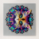 Mandala mit niedlichem Katzenportrait. Psychedelisch farbiges Muster.