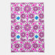 Küchenhandtuch in einem zwölf Punkte mandala Muster in den Tönen rosa, heiß rosa / fuchsienrot, schwarz und weiß mit Kobaltblau akzentuiert