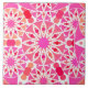 Zwölf Punkte Mandala Muster in den Tönen Fuchsienrosa, Pfirsich und Korallen, umrissen und mit Weiß akzentuiert