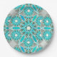 Mandala-Muster, türkis, silbergrau und weiß Pappteller