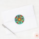 Eine intensiv farbige, originale Hand gezeichnet mandala Design auf einem Aufkleber. Ein zeichn mit Markern in einer pointillistischen Art und Weise, um ein lebendiges, auffälliges Kunstwerk von intensiver positiver Energie zu schaffen.