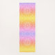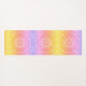 Eine Yogamatte mit Farbverlauf von violett bis gelb, mit einem Muster von weißen Mandalasen.