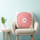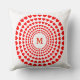 Kopfkissen mit sieben schönen Herzkreisen und dem M-Brief in der Mitte. Farbkombination Rot und Weiß. Liebe ist überall!