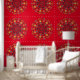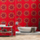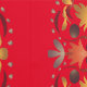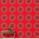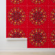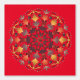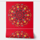 Mandala Rot Gelb Orange Braun auf rotem Hintergrund.