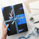This simple notebook has a Mandala Sparkle pattern that features purple and blue colors.