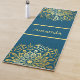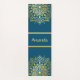 Eine wunderschöne Yoga- oder Übungsmatte mit handgezeichnet Mandala-Design in einem goldenen Farbton über einem dunkelblauen Hintergrund. Fügen Sie Ihren Namen in die Mitte.