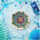 Farbenfrohe handgemalte Mandala-Design - grün, gelb, rot, blau, gold. Harmonie und Stimmungslage in der Natur.