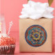 Farbenvolles Mandaladesign - blau, goldgelb, lila, orange, gelb, grün.