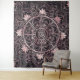 Himmelssonne und Mond mandala mit einer augenschwarzen und Imitate Rose goldgezeichnet Illustration, mit einem Imitat metallisch rot Rosa Glitzer streichelt Auge, Sonne und Mond mandala Blume. Ein spirituelles Universum Thema Schönheit henna mandala bohemian mädchenhaften Design.