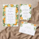 Mandarinenorangen, Blätter und Blüten. Sie können die Farbe des Schriftartes und des Schriftartes ändern. Die Einladung hat ein passendes orangefarbenes Muster auf der Rückseite.